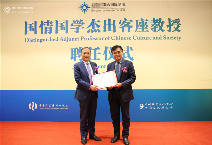 Before the lecture, UIC President Prof Tang Tao awarded Prof Lin Jianhua a certificate to appoint him as UIC’s first Distinguished Adjunct Professor of Chinese Culture and Society.