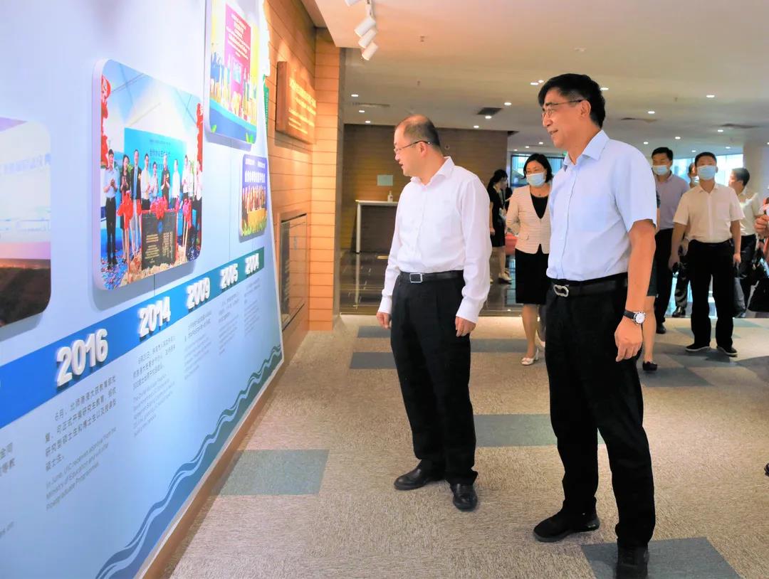 UIC President Prof Tang Tao and Provost Prof Chen Zhi led the tour of UIC's gallery, University Hall, Sports Complex and Learning Resource Centre (LRC), and viewed designs of the second-phase campus.