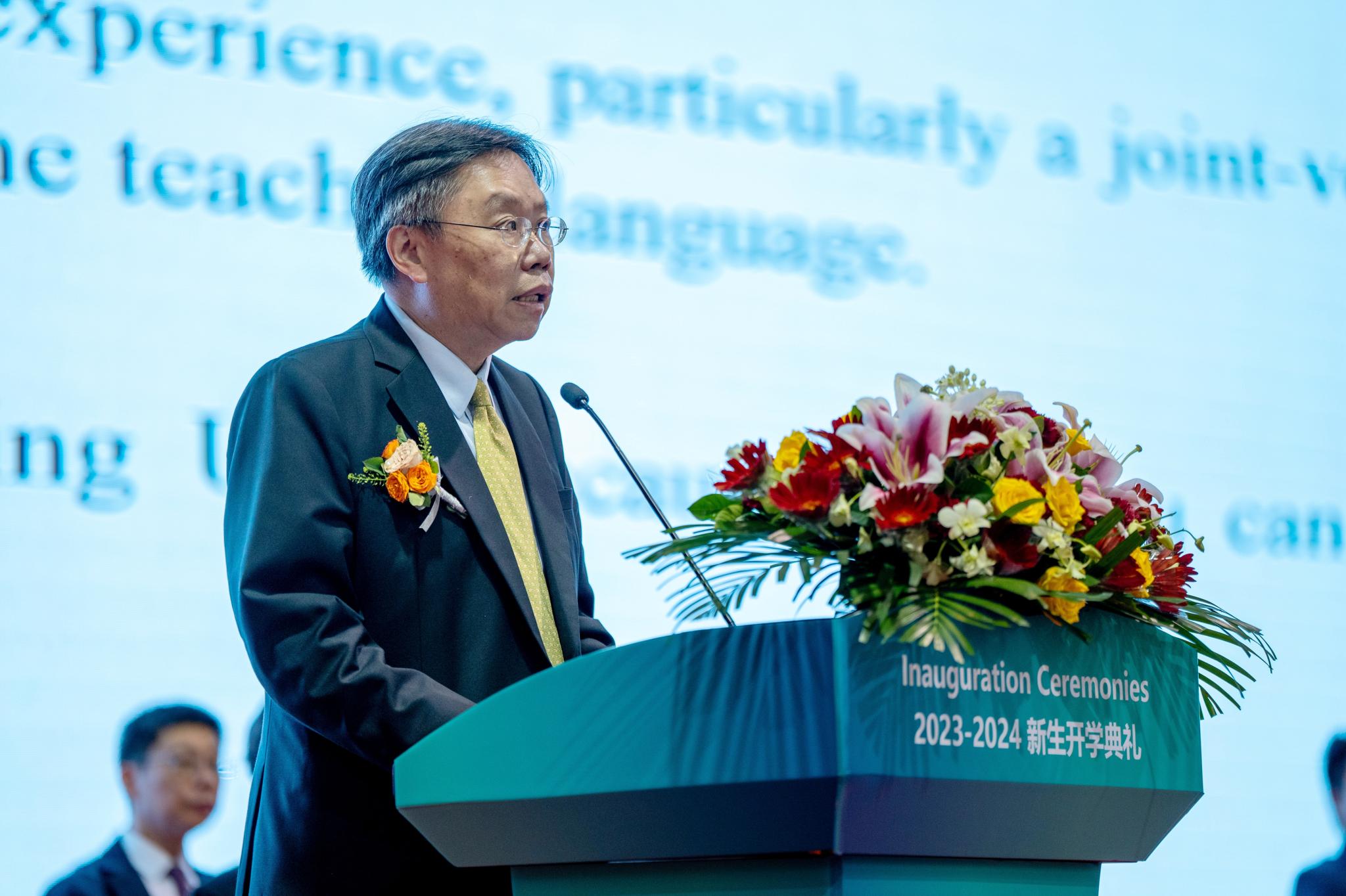 Prof Patrick Chau delivers a speech at the inauguration ceremonies