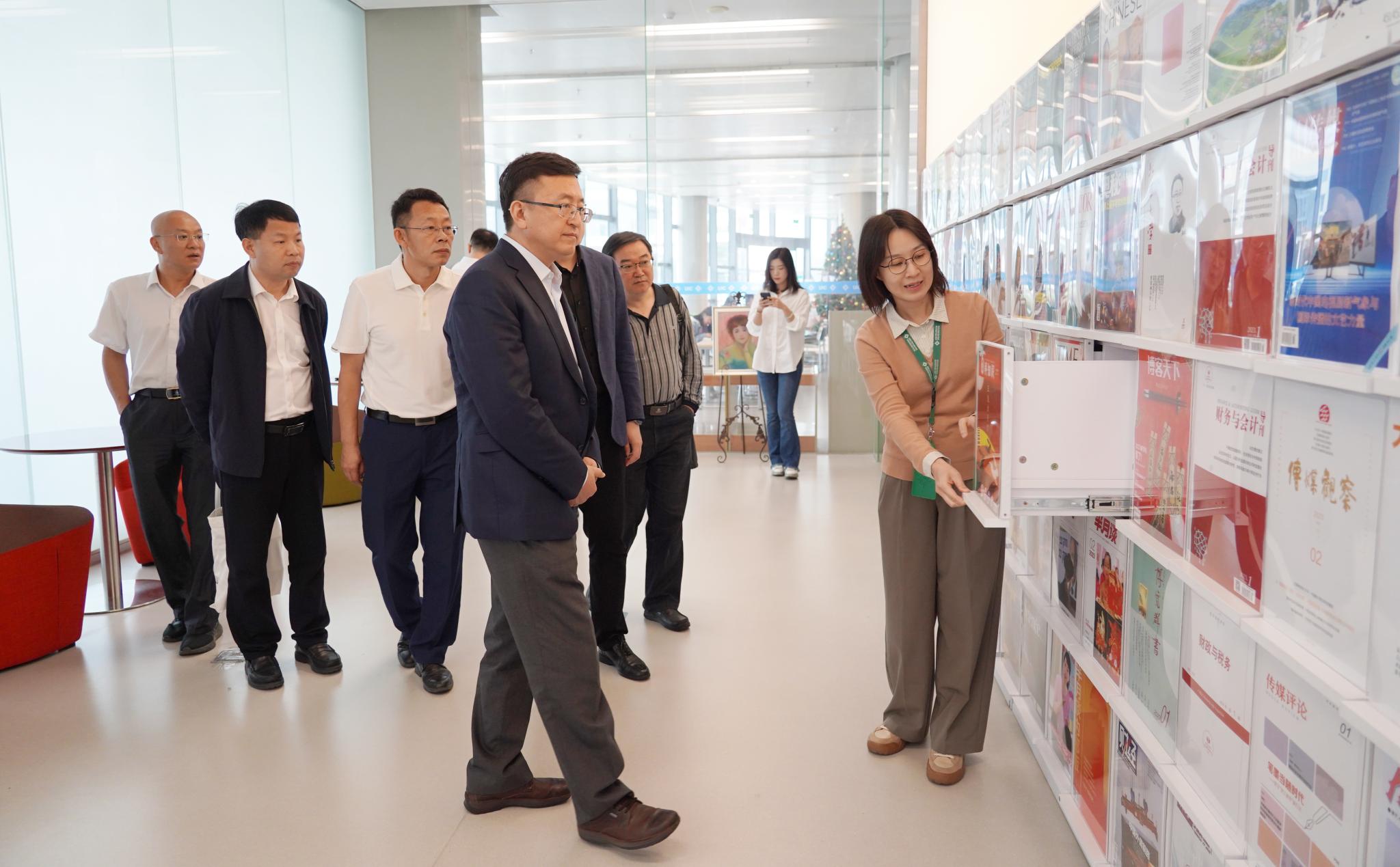 蔡立东校长一行参观了学习资源中心、数学体验馆、学生宿舍和艺峯等地,了解北师港浸大教学环境及教学特色。